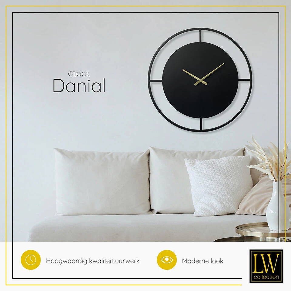 Wandklok DANIAL is geen standaard klok die u in vele huishoudens zult treffen. Onze klanten die deze mooie klok in huis haalden zochten expliciet naar een exclusieve eyecatchende zwarte minimalistische wandklok aan de muur.