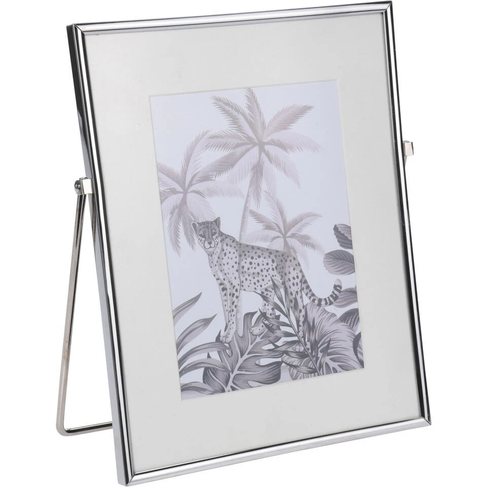 Fotolijst metaal zilver geschikt voor een foto van 20 x 25 cm. U kunt het fotolijstje staand presenteren, het lijstje is voorzien van standaard. Afmeting lijst: ca. 22 x 2 x 26 cm. Materiaal: metaal, glas.