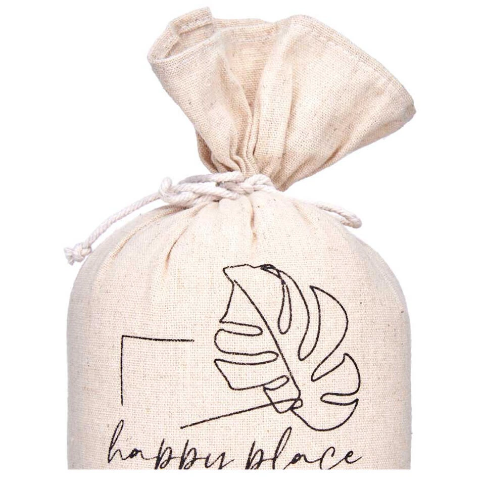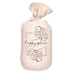 Deurstopper van 1 kilo zwaar voor binnen- of buitendeuren in de kleur beige met daarop de tekst Happy place. Afmeting: 13 x 13 x 26 cm. Gemaakt van canvas en vulling. Super handig artikel voor elk huis, winkel of kantoor om geen klapperende deuren te hebben.