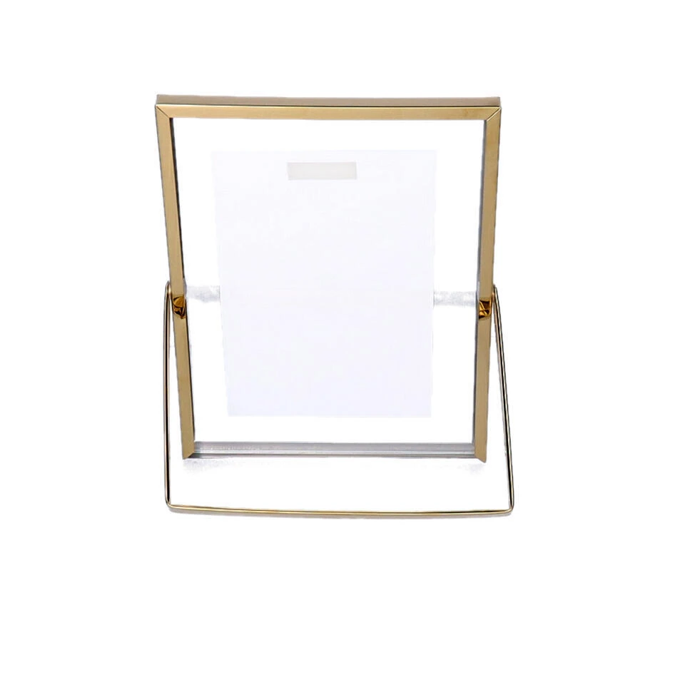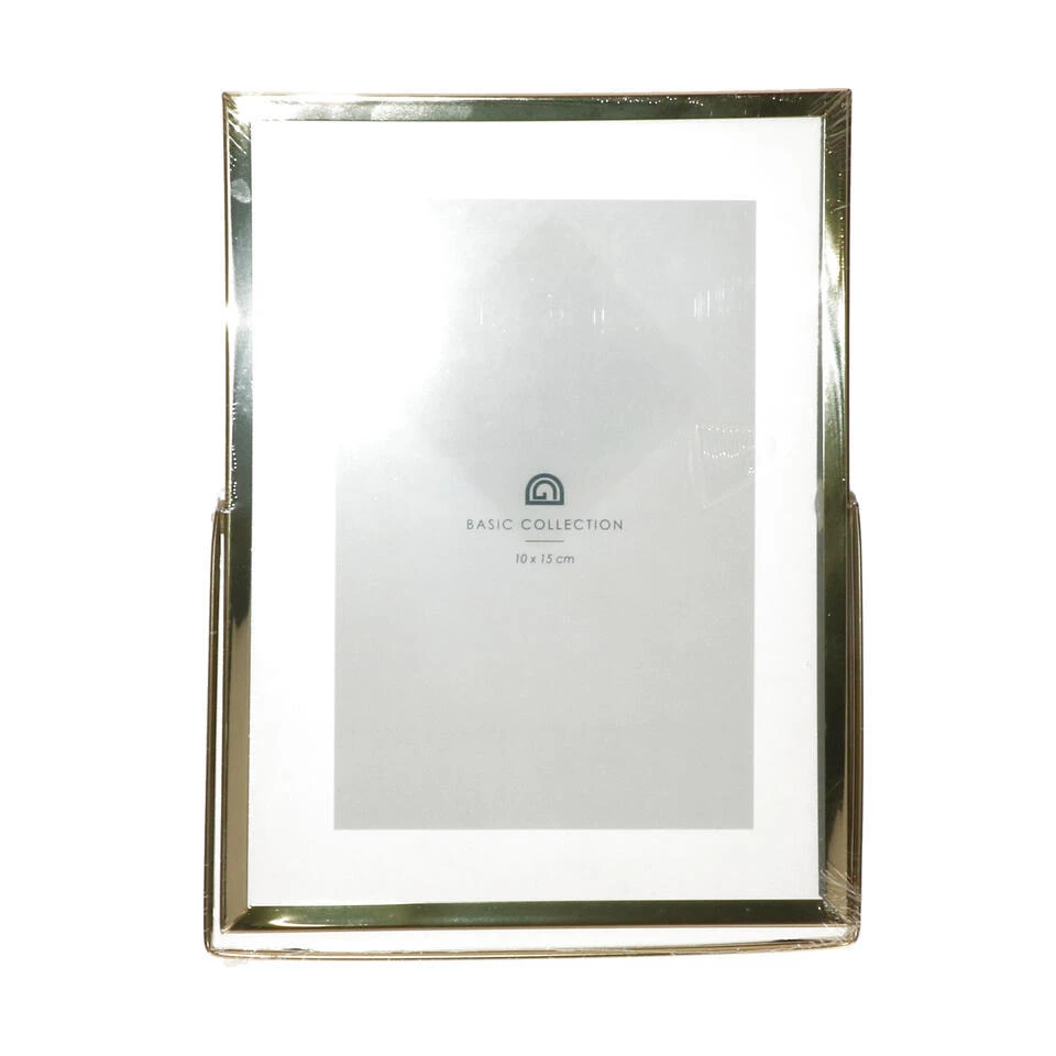 Fotolijstje in moderne stijl om staand te gebruiken. Dit mooie strakke fotolijstje heeft een afmeting van ca. 16 x 21 cm en is daarmee geschikt voor foto’s van 10 x 15 cm. Dit foto frame is uit Mumbai collectie is in de kleur goud en is verkrijgbaar in meerdere kleuren en maten. Het lijkt alsof de foto zweeft.