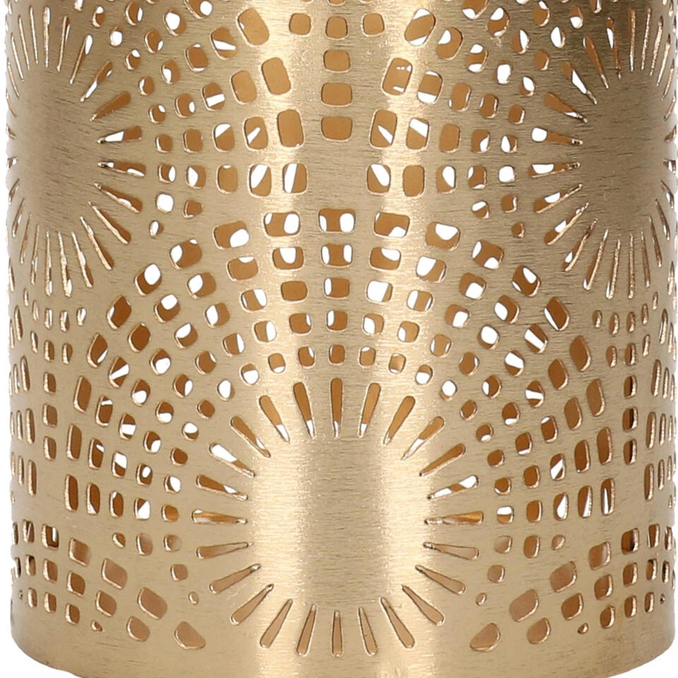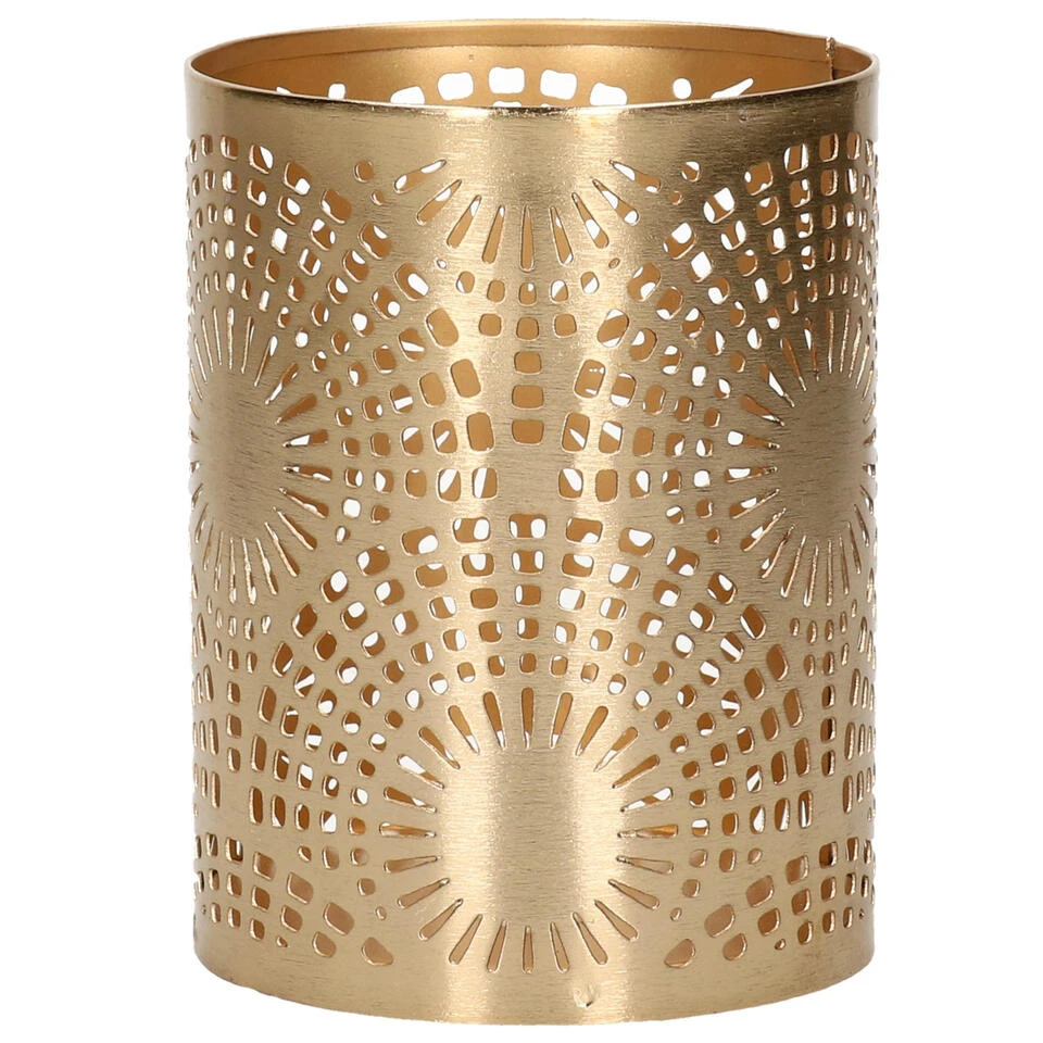 Metalen theelichthouder / windlicht goud D7,5 x H10 cm. Materiaal: metaal. Afmetingen:AÂ D7,5 x H10 cm.