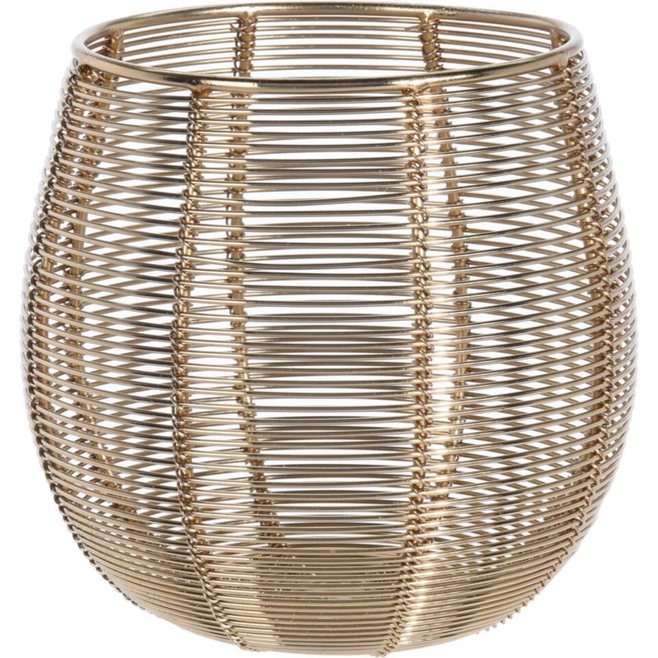 1x Theelichthouder/waxinelichthouder goud metaaldraad 12 cm. Ronde kaarsenhouder, geschikt voor theelichtjes/waxinelichtjes. De houder is gemaakt van goudkleurige draden. Door de metaaldraden en hun glanzende gouden kleur schittert er een mooi lichteffect en schaduweffect wanneer u een kaarsje brandt.