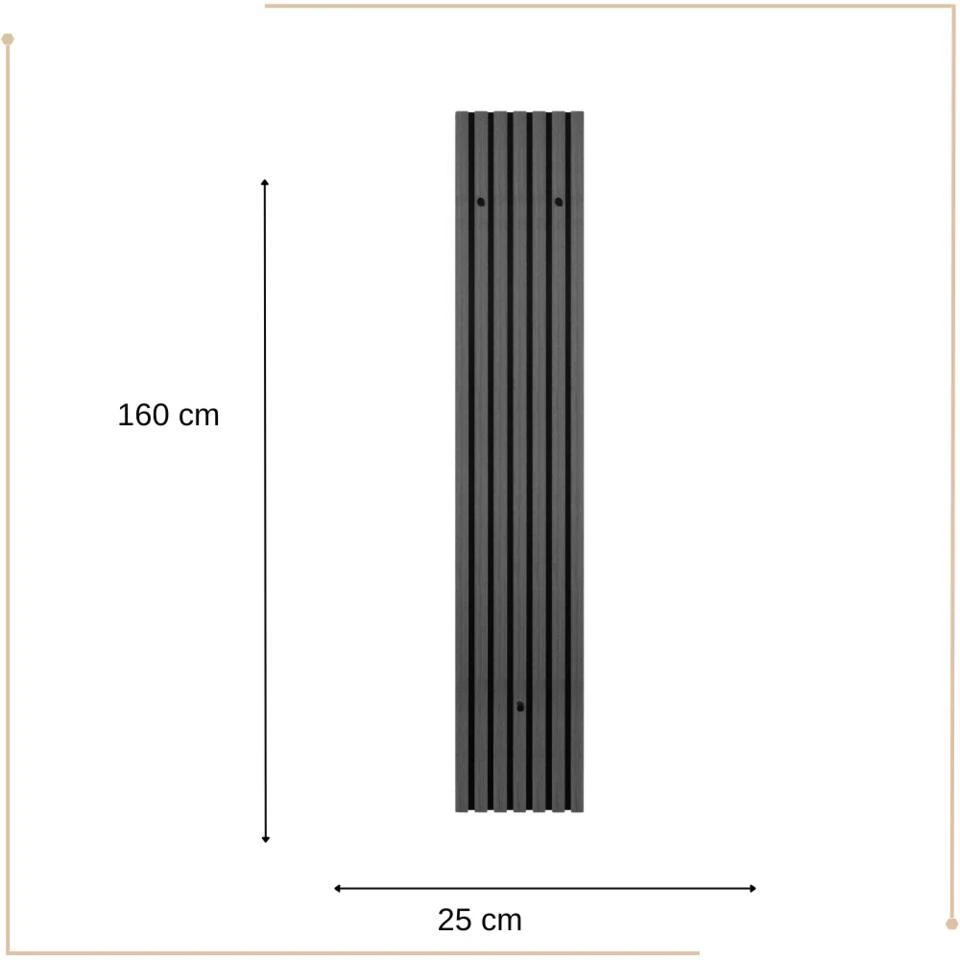 De MIRRORS AND MORE MISOU GRACE Kapstok is een stijlvolle en praktische toevoeging aan elke hal, woonkamer of slaapkamer. Dit wandpaneel combineert functionaliteit met design door een akoestisch paneel te integreren, wat niet alleen zorgt voor een rustiger geluidsklimaat, maar ook voor een moderne uitstraling. Met de lattenwand in combinatie met vilt creëert de kapstok een warme en gezellige sfeer in je interieur. De 3 stevige haken bieden voldoende ruimte voor het ophangen van jassen, hoeden, tasjes of andere accessoires. De afmetingen van 160x25cm maken deze kapstok geschikt voor zowel kleine als grote ruimtes, terwijl het MDF-frame en viltmateriaal de duurzaamheid en esthetiek benadrukken.