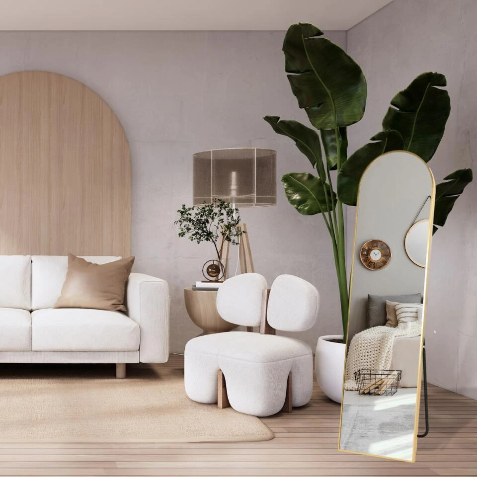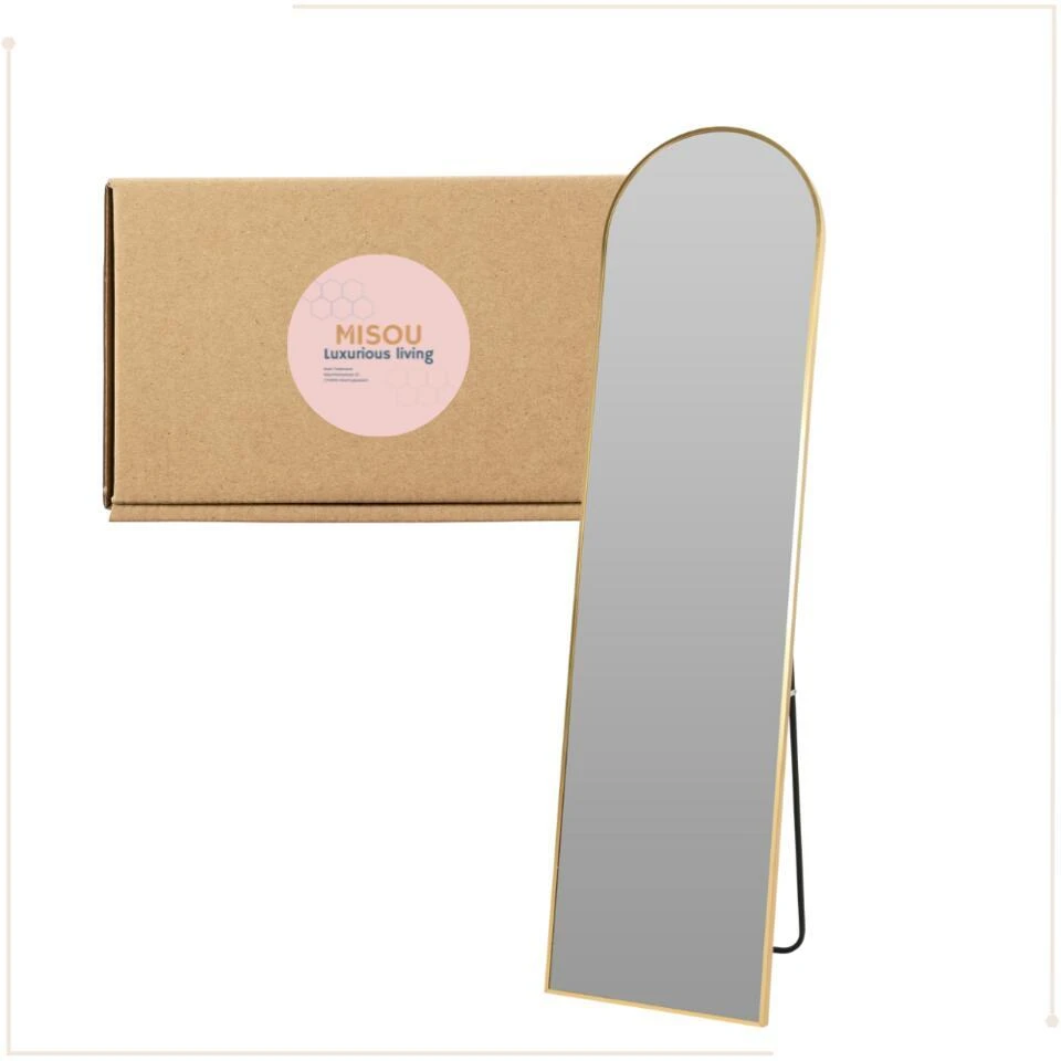 De MISOU Passpiegel Goud is een elegante en functionele spiegel die perfect past in elk interieur. Met zijn lange 150 cm hoogte biedt deze staande spiegel niet alleen een volledig reflecterend oppervlak, maar ook een prachtige toevoeging aan je slaapkamer, gang of woonkamer. Het gouden frame geeft de spiegel een luxueuze uitstraling, waardoor hij een verfijnde sfeer toevoegt aan de ruimte.