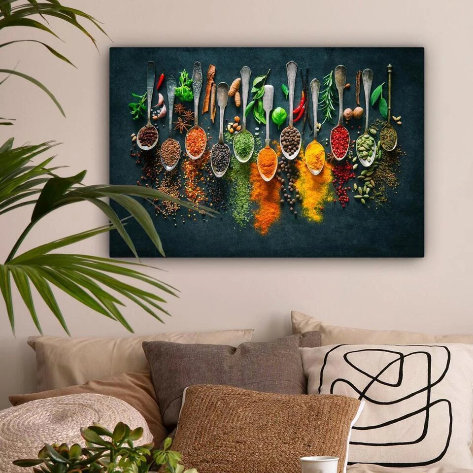 Allemaal lepels gevuld met peper, zout en overige kruiden en specerijen.