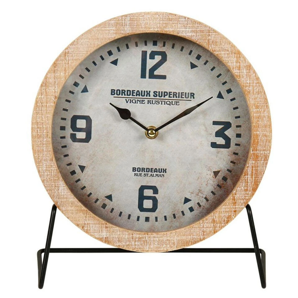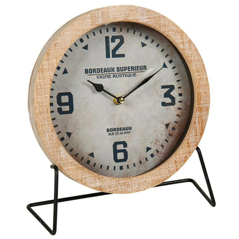 Tafelklok staand model Bordeaux gemaakt van hout. Kleuren: naturel/zwart. Afmetingen ongeveer: 24 x 10 x 28 cm. Aantal benodigde batterijen: 1x AA, niet inbegrepen. Staande klokken voor in de woonkamer, kantoor of slaapkamer. Robuuste uitstraling. Old School look. Een absolute verrijking van uw kantoor of huis interieur.
