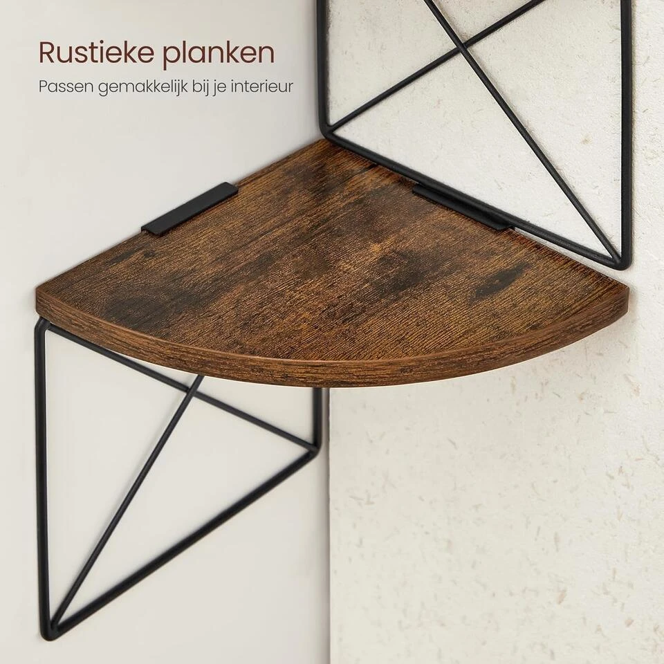 Het unieke zigzagontwerp, het warme rustieke houten oppervlak en de robuuste X-frames geven dit hoekrek een stijlvolle en eigentijdse uitstraling. Het past moeiteloos in diverse interieurstijlen en voegt een vleugje originaliteit en charme toe aan je huis.