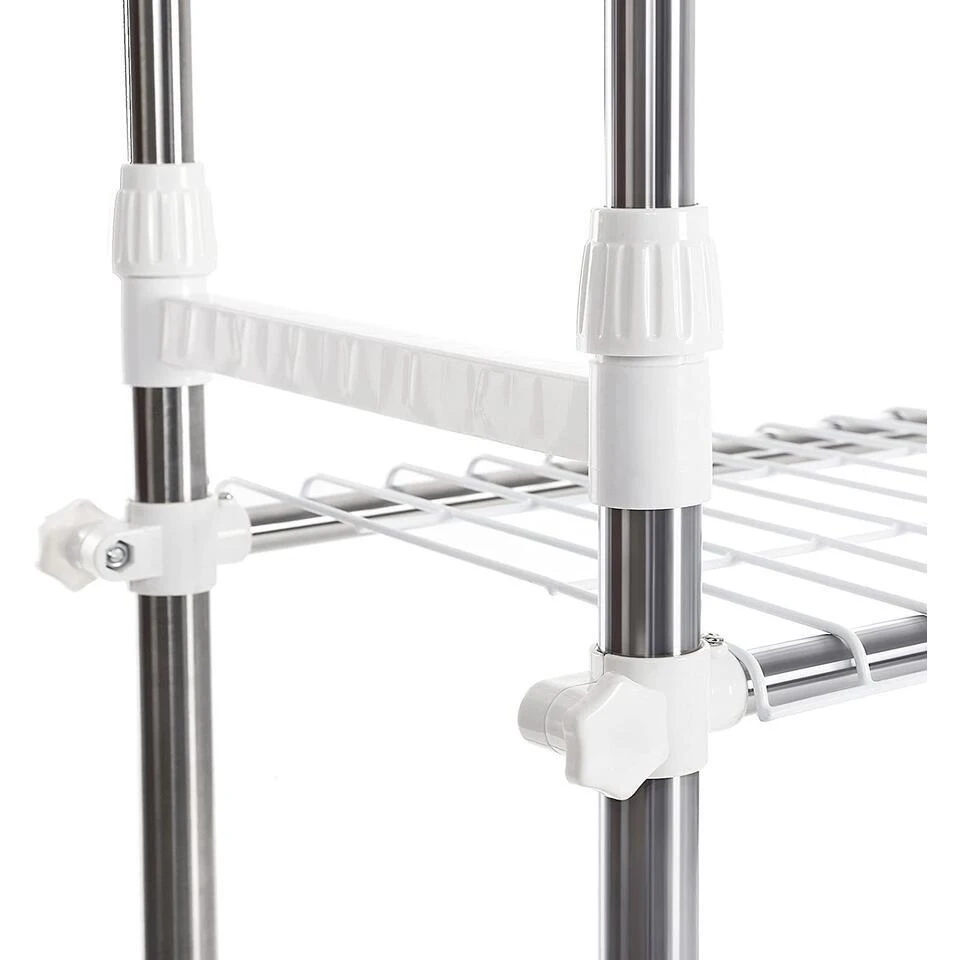 Dit multifunctionele roestvrij stalen kledingrek met schoenenrek is perfect voor elke huistijl. Met een afmeting van 154 x 172 x 42 centimeter biedt het voldoende ruimte voor al uw kleding en schoenen. Het moderne ontwerp maakt het eenvoudig te combineren met andere meubels in uw huis.