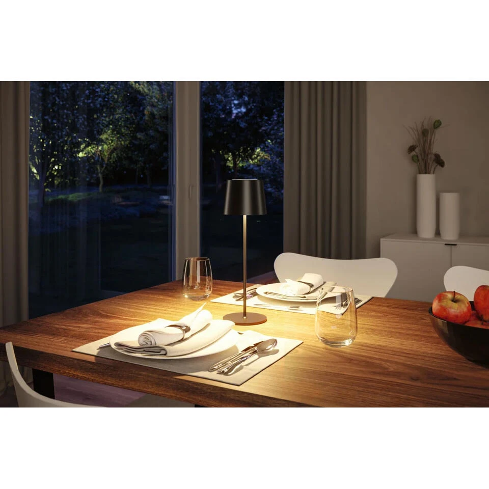 Berschermingsklasse IP44 zorgt ervoor dat de lamp zowel binnen als buiten gebruikt kan worden. Of het nu bij het kamperen is, op het terras of het balkon, in een restaurant of in de woonkamer – de accu tafellamp kan overal worden ingezet.