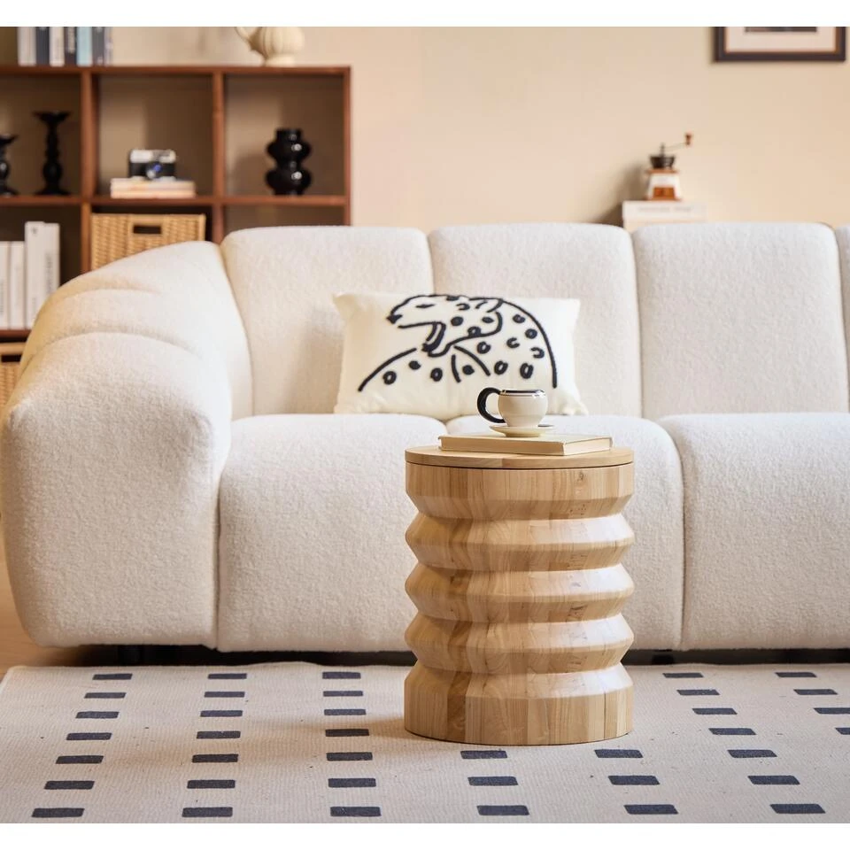 De bruine houten basis Salon Pouf SANTIAGO heeft een modern design en handige opbergruimte, waardoor het perfect is om uw interieur te verfraaien. Of het nu in uw slaapkamer, kantoor of woonkamer is, het zal zeker zijn plek vinden. De pouf is gemakkelijk te onderhouden, een vochtige doek is voldoende om het schoon te maken.