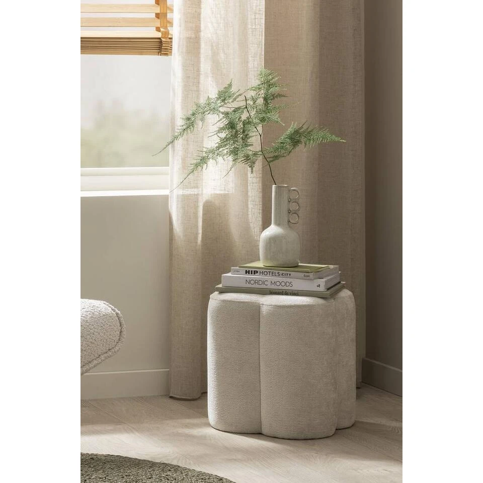 Poef Sandy in de kleur zand heeft alles wat een poef nodig heeft; de poef is comfortabel om op te zitten, gemakkelijk te verplaatsen en ook nog eens mooi om naar te kijken! Het unieke ontwerp voegt een vleugje speelsheid toe aan je interieur. Ook fijn om te gebruiken als bijzettafel. De afmeting van dit poefje is Ø38×35 cm.