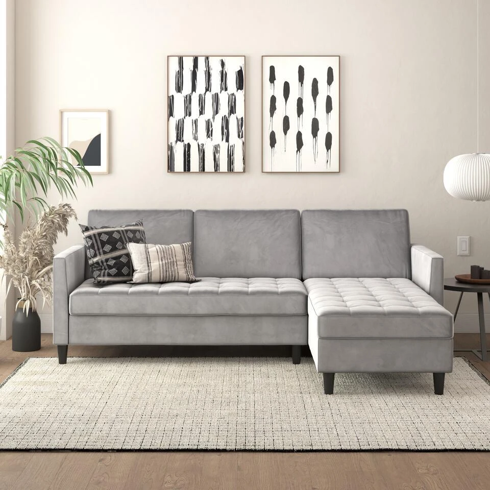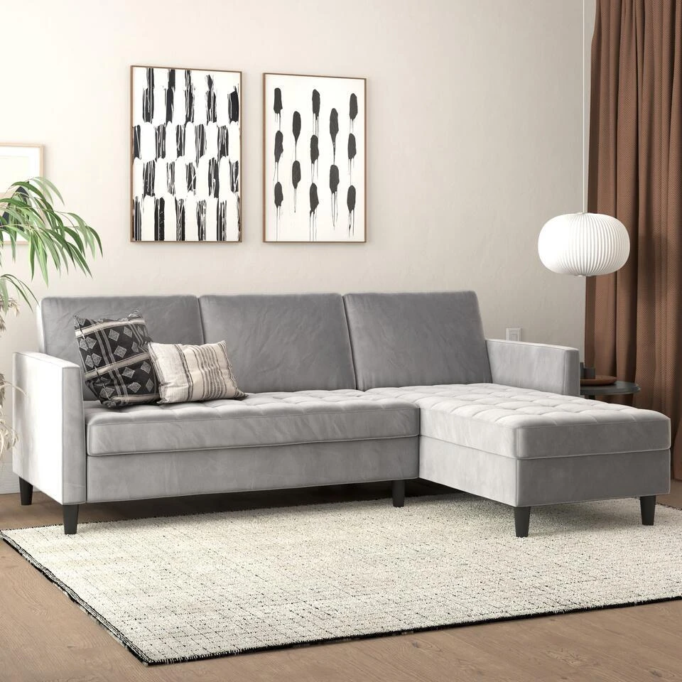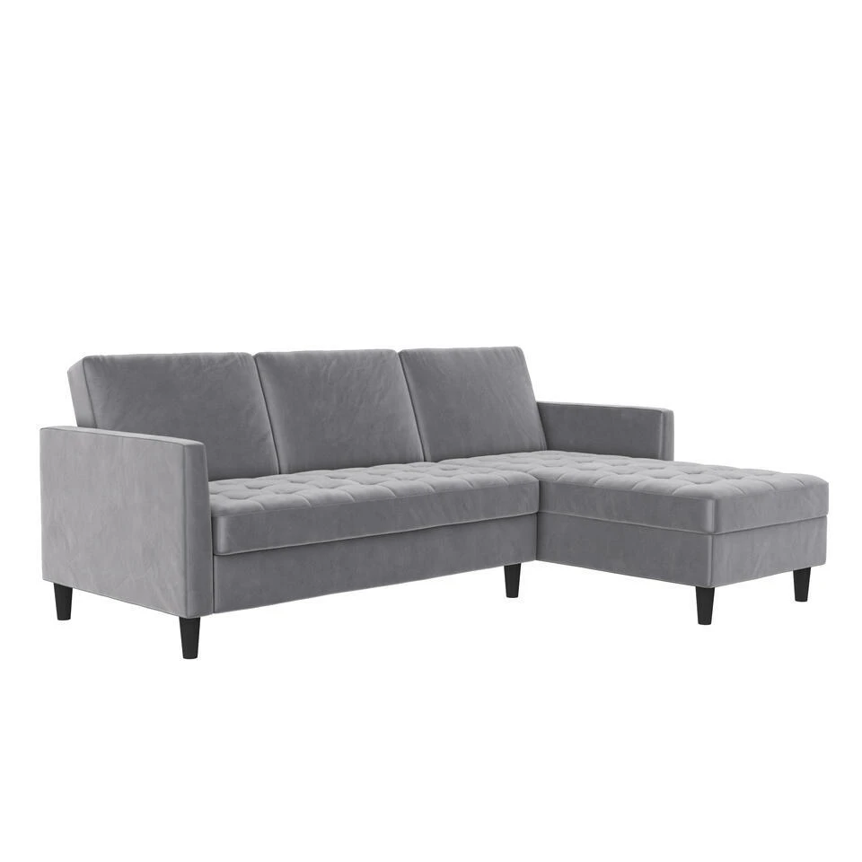 Presley – 3-zits Hoekslaapbank Met Opbergruimte In Grijs Fluweel