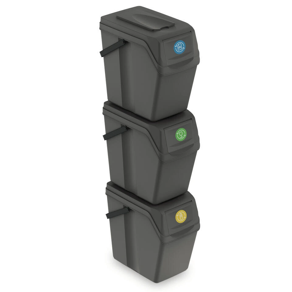 Prosperplast Afvalscheidingsbak – 3 St – Grijs – Kunststof – 25 L