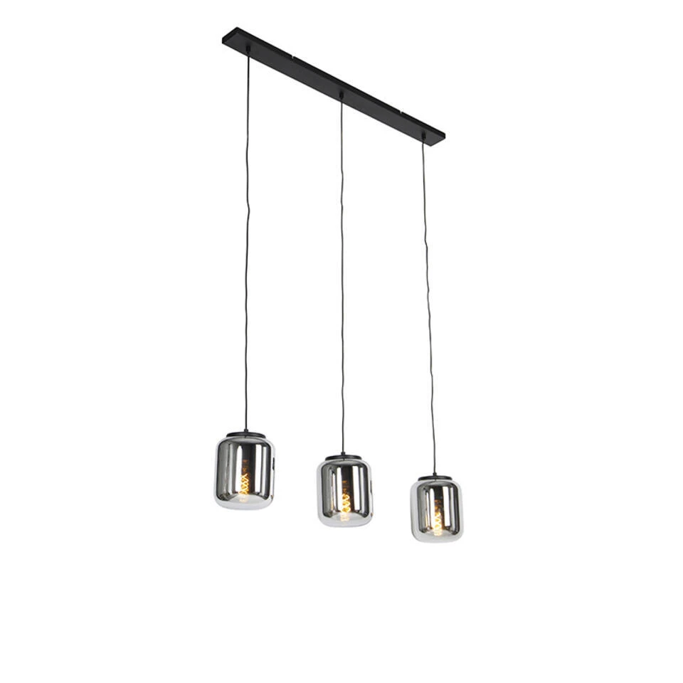 QAZQA Design Hanglamp Zwart Met Smoke Glas 3-lichts – Bliss