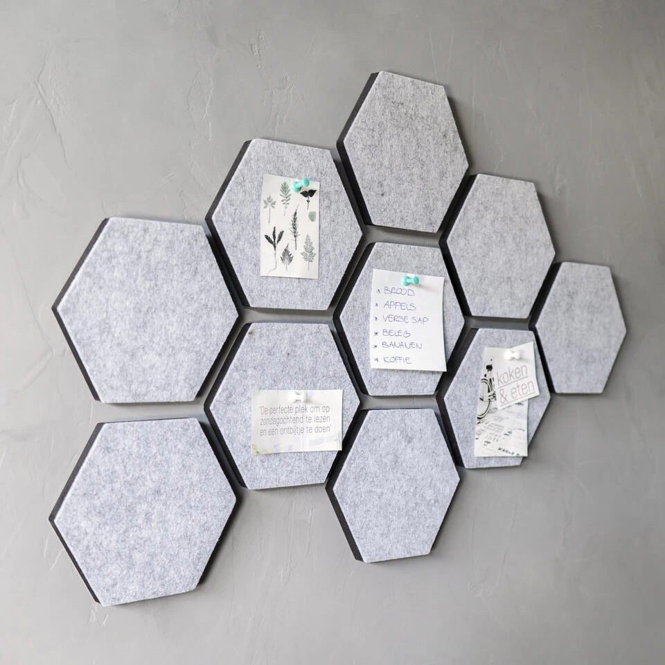 QUVIO Vilten memobord hexagon set van 10 –Â Grijs
