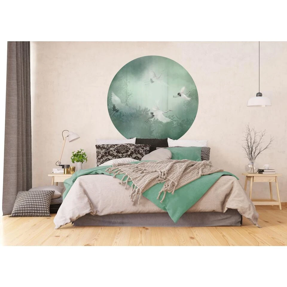 Sanders & Sanders Zelfklevende Behangcirkel – Kraanvogels – Groen – Ø 140 Cm