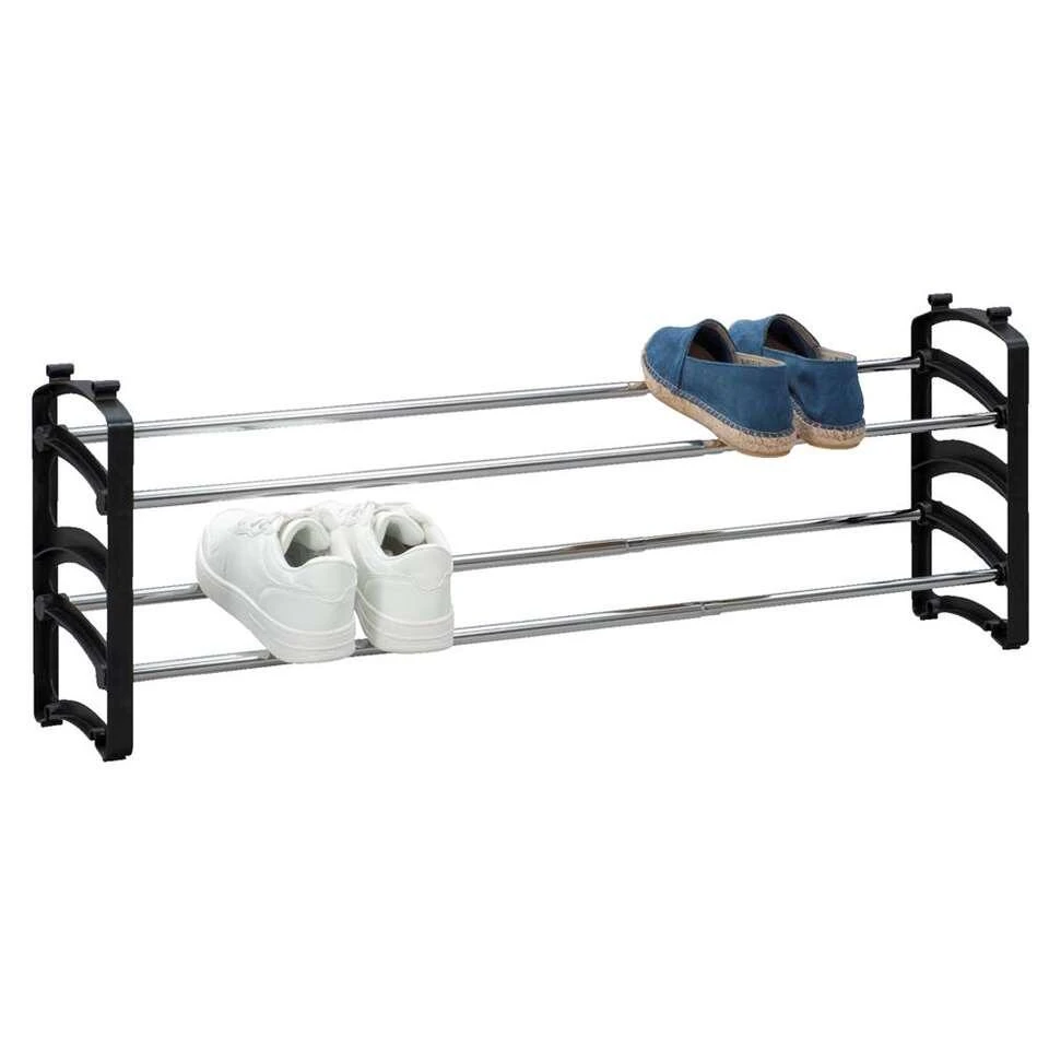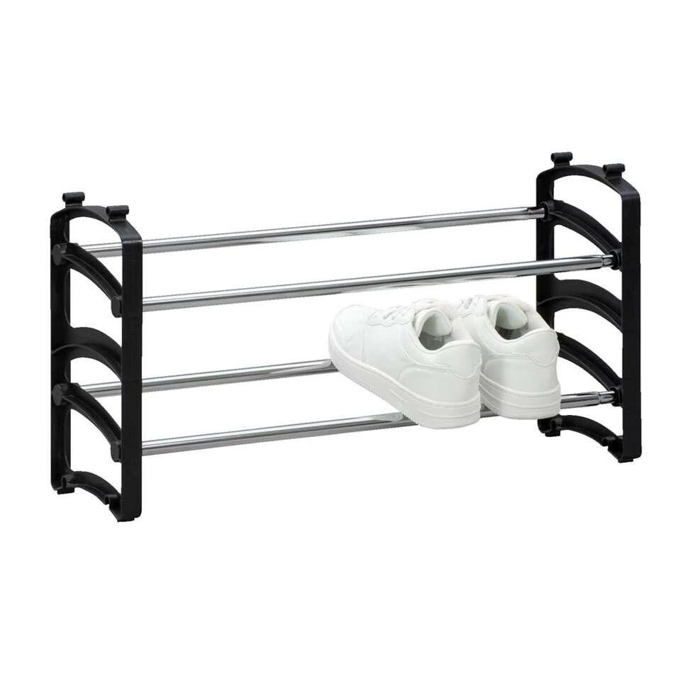 Met een schoenenrek berg jij jouw schoenen altijd op een nette manier op. Dit schoenenrek is verstelbaar en stapelbaar. Het rek is dus heel gemakkelijk in het gebruik! Door zijn fijne afmeting van 62-115x18x33 cm neemt het rek niet veel ruimte in beslag en is het dus ook geschikt voor wanneer je wat minder ruimte hebt. Omdat het rek de kleur zwart heeft, past het in ieder interieur. Met een schoenenrek heb jij overzicht over al jouw mooie exemplaren!