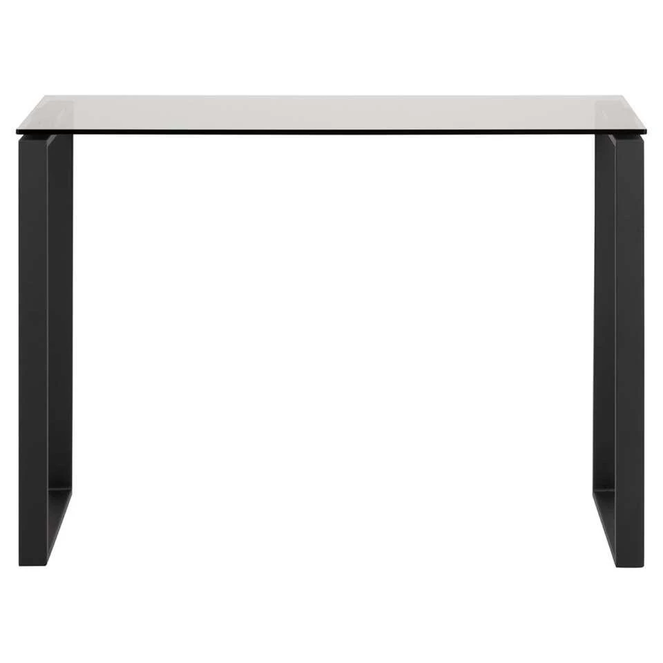 Sidetable Kane is zwart en heeft een afmeting van 76x110x40 cm. Dit meubel is gemaakt van glas en metaal en heeft een moderne look. Dit eenvoudige, moderne en stijlvolle tafeltje is perfect voor in de hal of de slaapkamer. Leg of zet er decoratieve kleine dingen op of bijvoorbeeld een schaal waar je je sleutels of allerhande andere kleine dingen in kunt leggen.