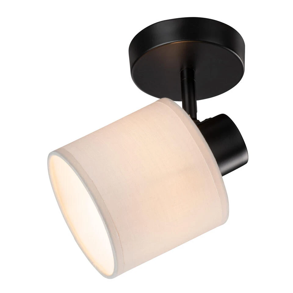 Spot Amani heeft een natuurlijke uitstraling door de naturel stoffen kap. Door de combinatie met zwart past hij perfect in eigentijdse interieurs. De spot kan zowel aan het plafond als aan de wand bevestigd worden.