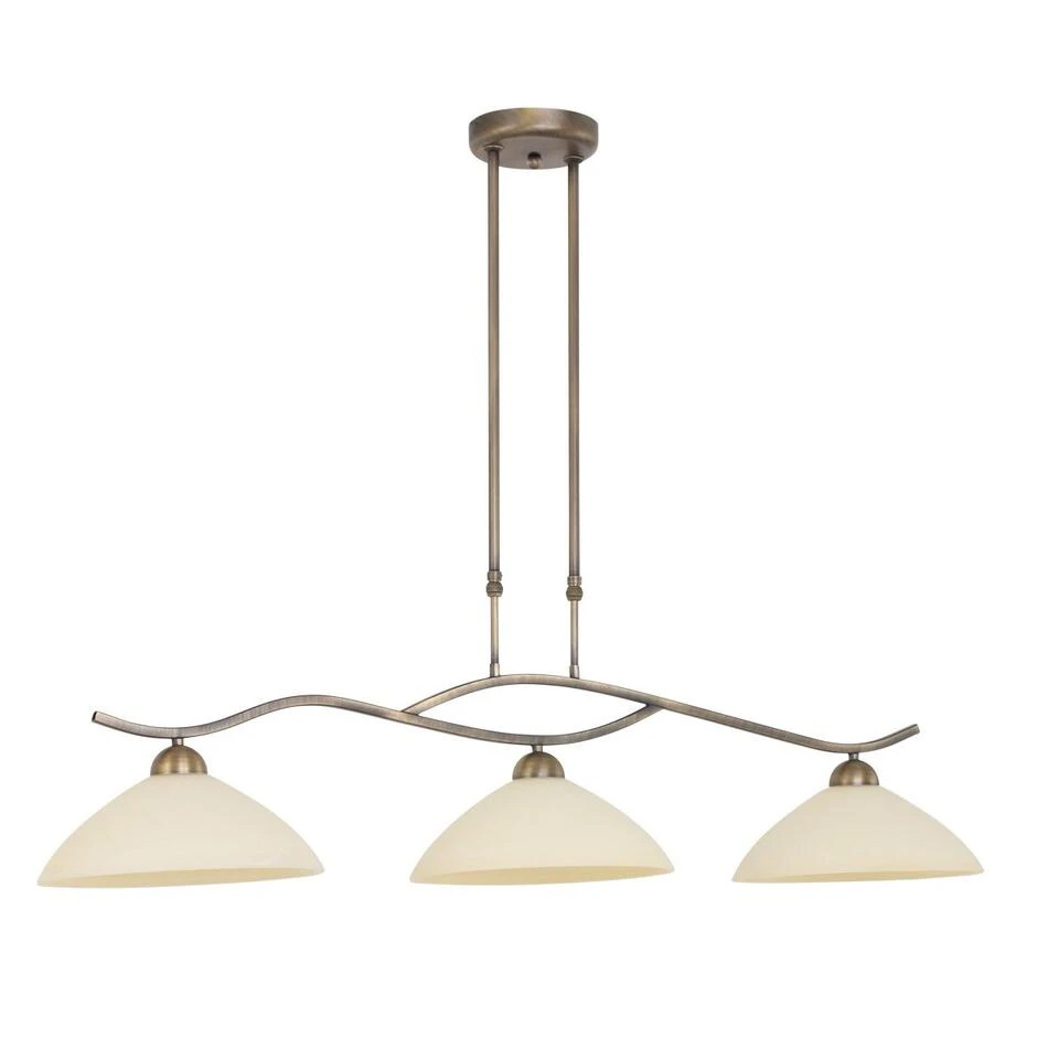 Bronskleurige 3-lichts hanglamp uit de serie Capri. Sierlijke vierkante buizen geven deze hanglamp een modern uiterlijk. E27 fitting 3*60 watt. Hanglamp is in hoogte verstelbaar. Geschikt voor LED lampen, spaarlampen en gloeilampen. 6837BR hanglamp