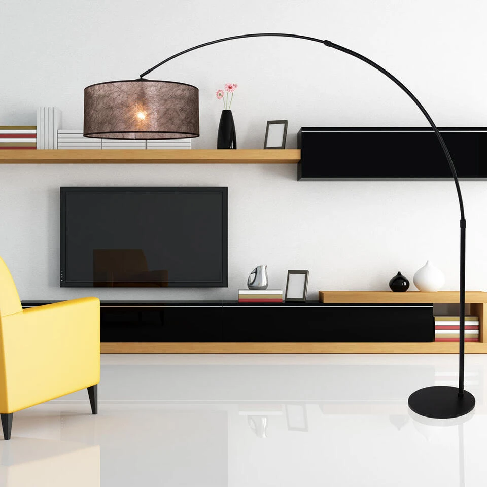 Grote Booglamp uit de Sparkled Light serie, wordt geleverd met zwarte sizoflor kap met een doorsnede van 50 centimeter en 20 centimeter hoog. Het armatuur is vervaardigd uit geborsteld staal met een zwarte kleurtoon en voorzien van een E27 fitting, geschikt voor alle type lichtbronnen tot 60 watt. Door de verschillende verstel mogelijkheden kunt u precies licht geven waar u het wilt. De maximale hoogte van de lamp is 210 centimeter. De maximale uitschuiflengte is 200 centimeter (zonder kap). Wordt geleverd met snoer van 320 centimeter met vloerschakelaar. Vloerlamp 7268ZW met kap K1066N = 9834ZW.
