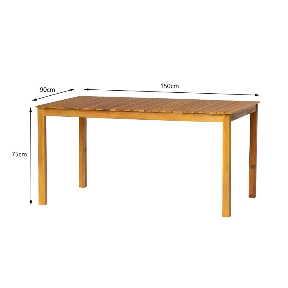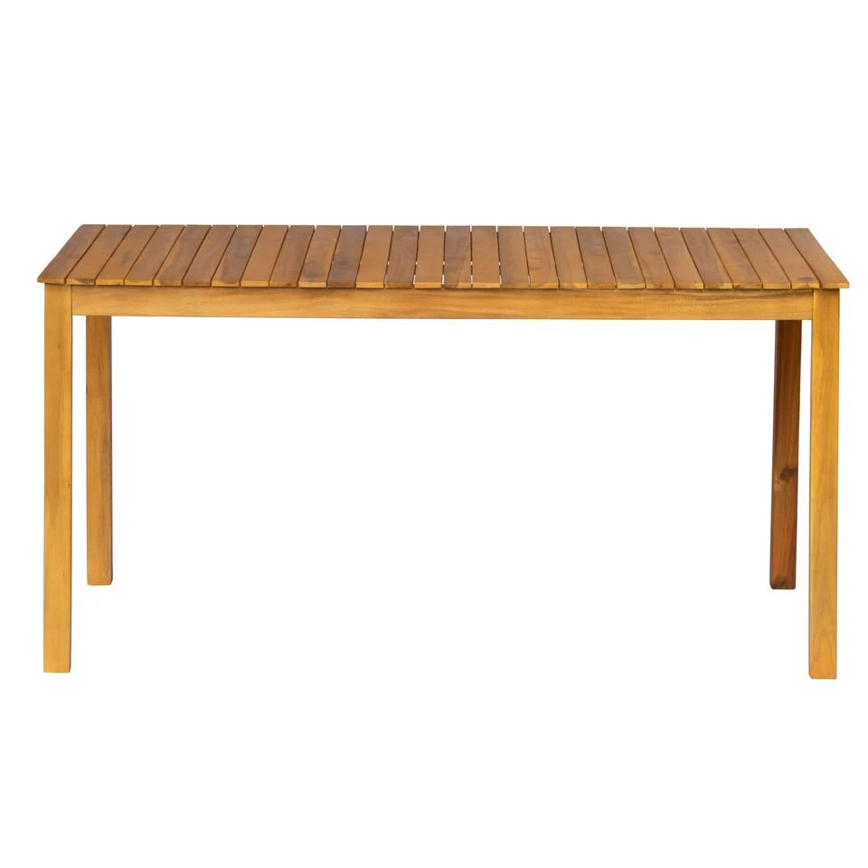 De ALICANTE eettafel met zijn rustieke en strakke design heeft alles wat nodig is om uw interieur of tuin te verfraaien. Gemakkelijk te monteren, deze tafel is geschikt voor 6 personen. De massief acacia structuur en het tafelblad zorgen voor stabiliteit en weerstand tegen stoten. Het product is gemakkelijk te onderhouden, een vochtige doek is voldoende om het schoon te maken.