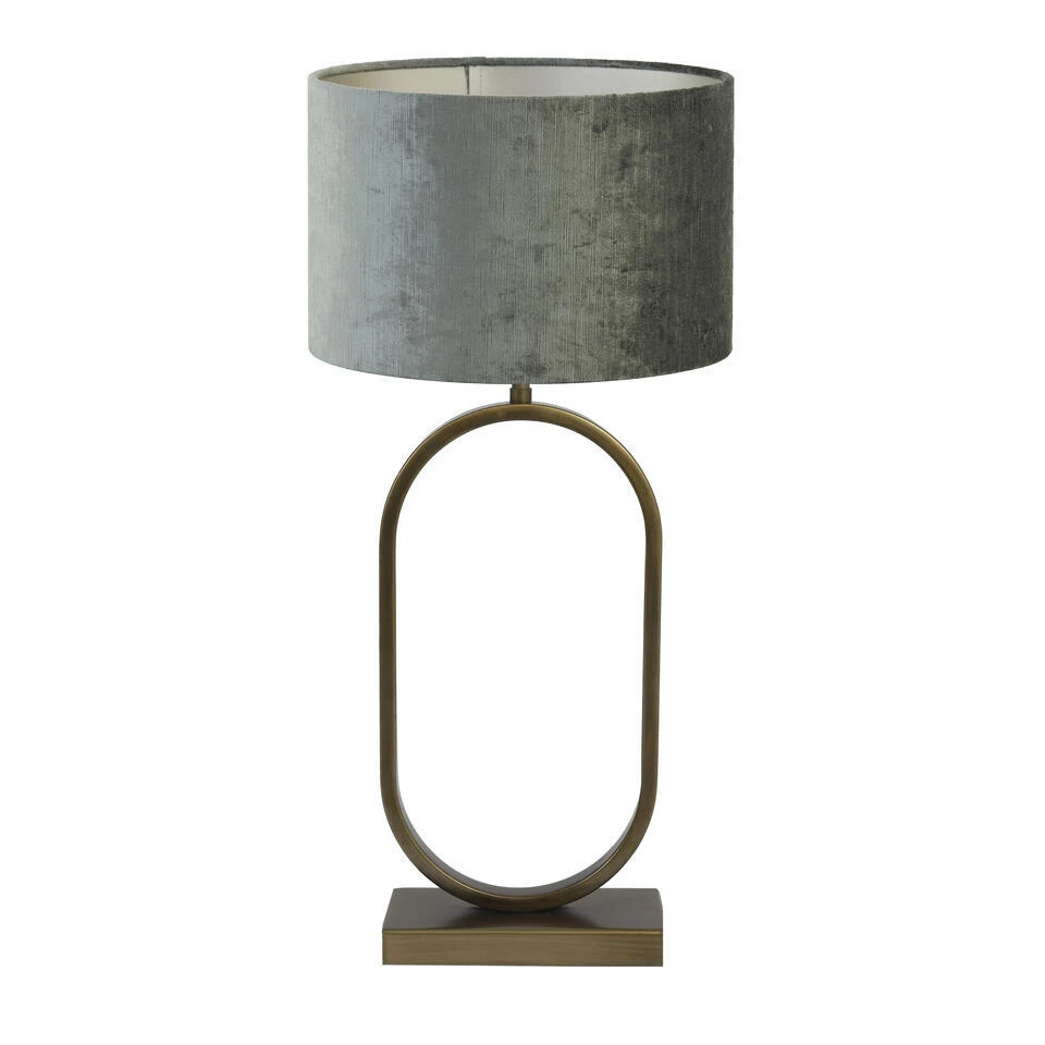 Op zoek naar de perfecte tafellamp inclusief lampenkap? De Jamiri is een moderne antiek bronzen lampvoet van metaal en wordt geleverd inclusief cilinder lampenkap Gemstone. Dit is een antraciete effen lampenkap, gemaakt van een luxe glanzende velvet stof. De antiek bronzen lampvoet past in ieder interieur en is daarom een gegarandeerd tijdloze tafellamp in de woonkamer of als nachtlampje in de slaapkamer. Doordat de voet inclusief kap wordt geleverd, hoef jij je geen zorgen te maken of de verhoudingen wel kloppen. De kap past perfect op de ovale lampvoet. De totale afmeting van de tafellamp is 30x30x67 cm.