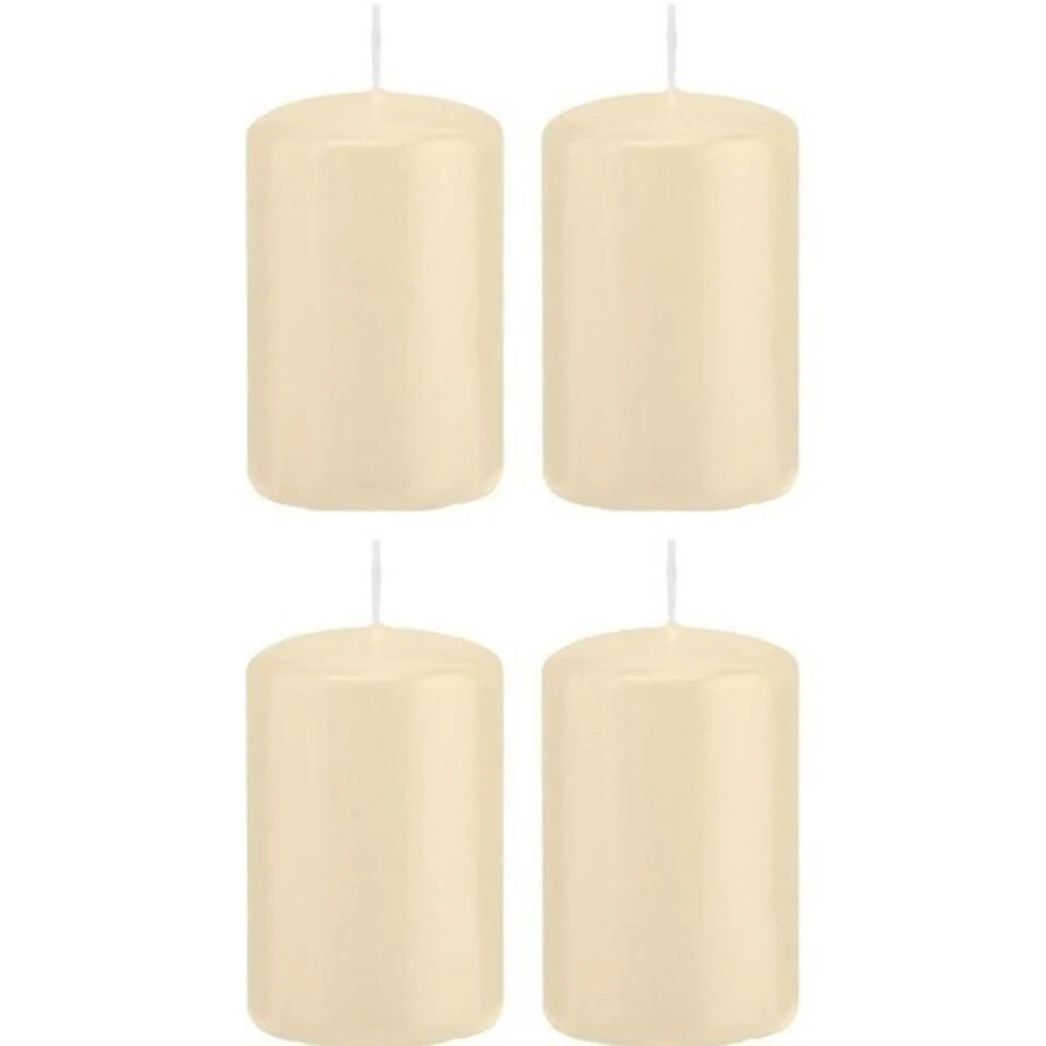 4x Cremewitte cilinderkaarsen/stompkaarsen 5 x 8 cm 18 branduren. Rechte cilinderkaarsen/stompkaarsen zonder geur met gladde afwerking in de kleur cremewit. U kunt meerdere kaarsen gebruiken als sfeermakers, bijvoorbeeld tezamen gepresenteerd op een kaarsenplateau.