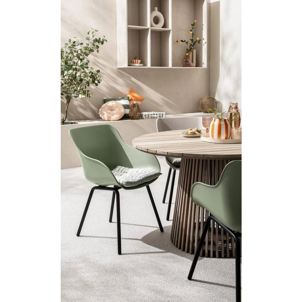 De tuintafel Saône is gemaakt van acaciahout met een greywash afwerking. Daardoor heeft de ronde tuintafel een landelijke uitstraling. Met een hoogte van 76 cm en een diameter van 120 cm is hij geschikt voor ongeveer 6 personen. Dus ben je op zoek naar een landelijke tuintafel? Dan is de Saône wellicht geschikt voor jou.