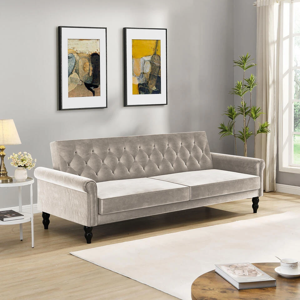 Deze stijlvolle 3-zits slaapbank is bekleed met zacht fluweel en voegt een verfijnde en gezellige uitstraling toe aan elke woonruimte. Of hij nu in de woonkamer, logeerkamer of thuiskantoor staat, hij combineert comfort en functionaliteit moeiteloos. De bank verandert eenvoudig in een ruim bed, ideaal voor het ontvangen van logés. De stevige constructie zorgt voor duurzaamheid, terwijl de zachte bekleding warmte en elegantie toevoegt aan je interieur. Met een gemonteerde afmeting van ongeveer 222 × 82 × 83 cm biedt hij royale zitruimte zonder veel plaats in te nemen. Een slimme en veelzijdige keuze voor moderne interieurs.
