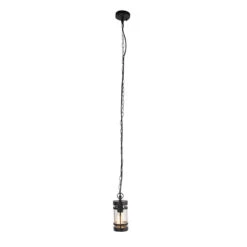 QAZQA Landelijke Buitenplafondlamp Zwart Met Glas IP44 – Elza