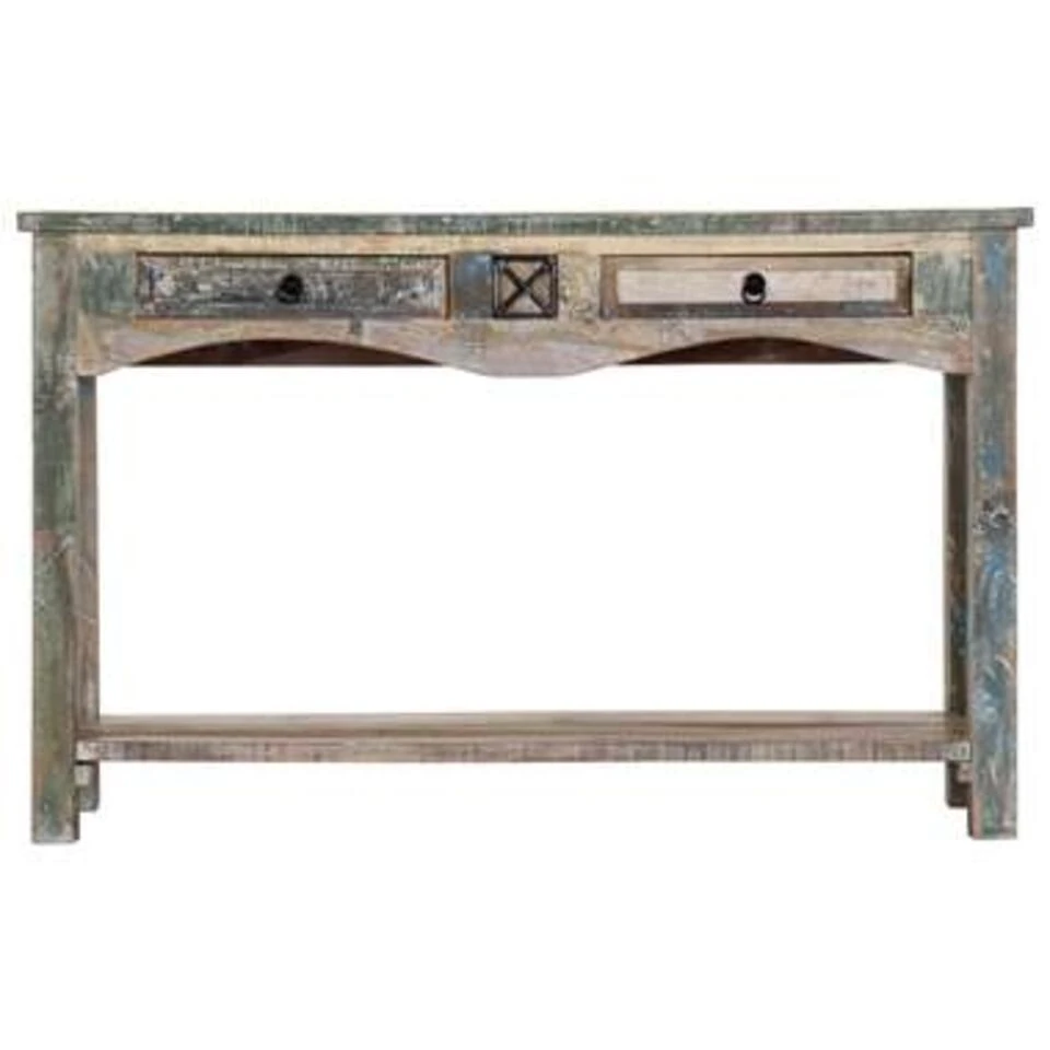 Dit retro meubelstuk is gemaakt van massief gerecycled hout dat afkomstig is van balken, vloeren en steunbalken van oude gebouwen die zijn gesloopt. Dit hout bestaat uit verschillende houtsoorten, zoals grenen, teak, beuken, eiken, ceder, mangohout en acacia. Dit betekent dat het teruggewonnen hout de kenmerken van deze verschillende houtsoorten heeft. Gerecycled hout is al verouderd, verweerd en gedroogd en krimpt en buigt daarom niet. Deze retro kast is zeer stabiel, duurzaam en opvallend. Het prachtige vakmanschap en de sierlijke houtnerven maken elk meubelstuk uniek en enigszins anders dan de rest. Daarnaast heeft het meubel 2 lades en 1 schap die voldoende opbergruimte bieden voor je multimedia-apparaten, boeken en andere spullen.