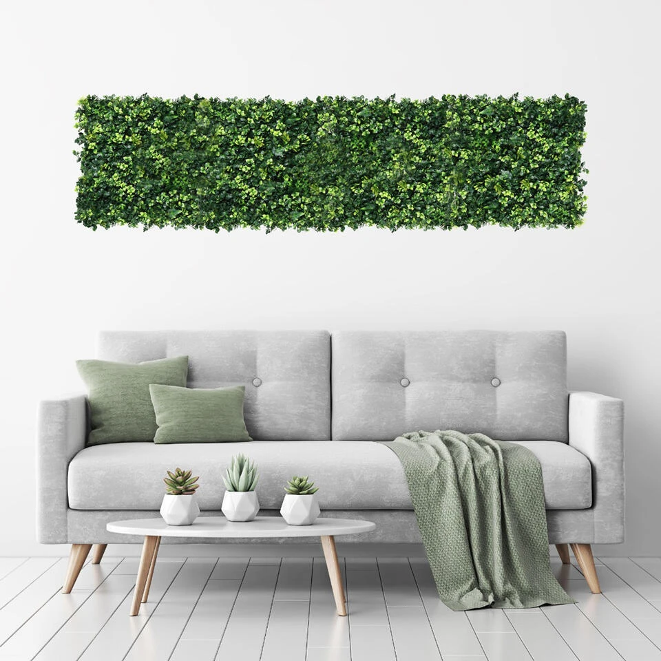 Deze decoratieve wandpanelen zijn bedekt met kunsthaag klaverblad. Ze kunnen gebruikt worden voor verschillende ruimtes en gelegenheden. De panelen hebben vrijwel geen onderhoud nodig, omdat de bladeren kunstmatig zijn.