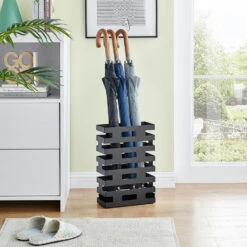 ACAZA Metalen Paraplubak, Met Waterbakje En Anti-Kras Kussentjes, Zwart