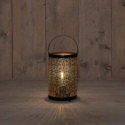 Bellatio Design Lantaarn – Zwart Met Goud – Timer – LED – 22 X 16 Cm