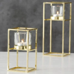 Merkloos Waxinelichthouders – 2 Stuks – Goudkleurig – Metaal – 15 En 23 Cm