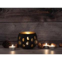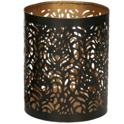 Merkloos Windlichten Set – 2x – Zwart/goud – 10/15 Cm – Theelichthouder