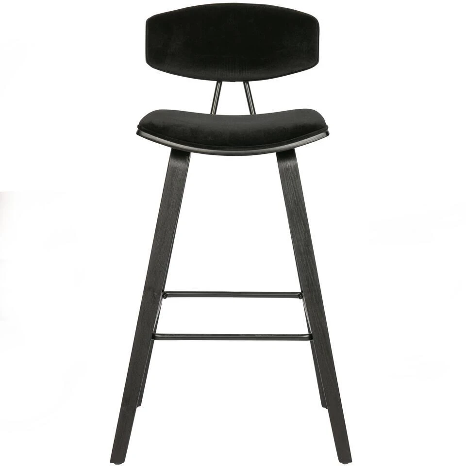 De Senn barstoel uit de collectie van het Nederlandse merk WOOOD Exclusive is een modern ontwerp met stoere uitstraling. De zitting en rugleuning van Senn zijn gemaakt van zwart multiplex bekleed met een zachte velvet stof in een zwarte tint. Het slanke frame is gemaakt van multiplex voorzien van een zwarte afwerking. Extra fijn: de metalen stang om de voeten comfortabel te laten rusten!