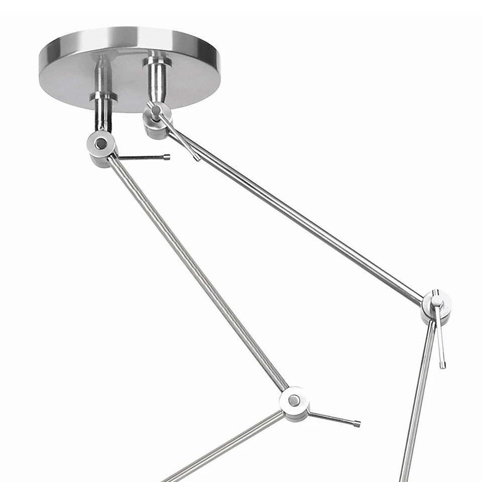 Bevindt het lichtpunt zich niet boven de tafel of wil je flexibel zijn met de plek van de tafel? Deze zeer functionele plafondlamp heeft 2 armen die overal naar toe te bewegen zijn. Voorzien van veel scharnier punten om de kappen daar naar toe te bewegen waar u wilt. Deze hanglamp is een ideale lamp als uw lichtpunt zich niet op de juiste plek bevindt.